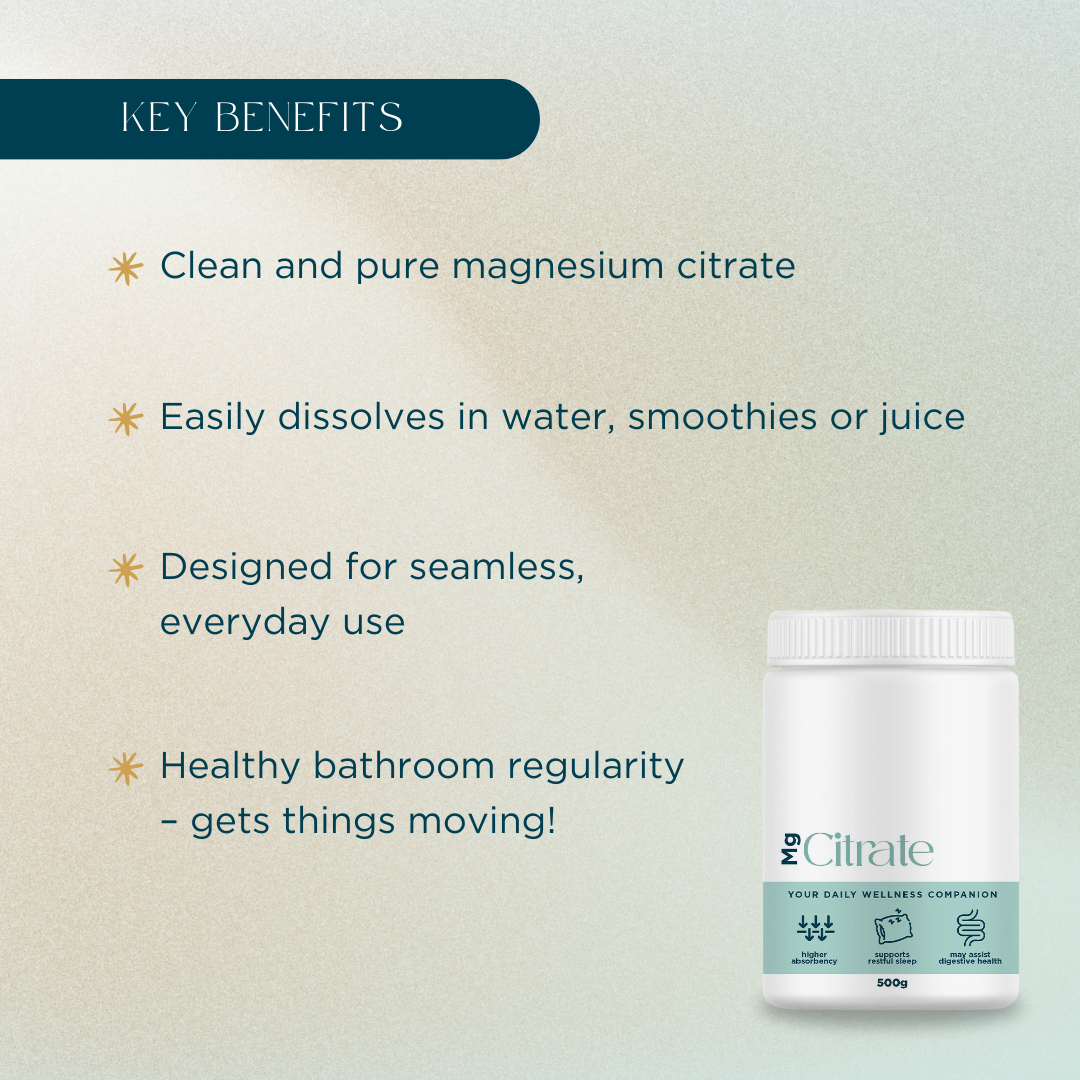 When life feels a little off track, Magnesium Citrate is here to help you reset and keep regular. Known for its smooth mixability and gentle nature, it's clean, unflavoured powder that fits effortlessly into busy routine. Especially when things feel a little ... backed up.