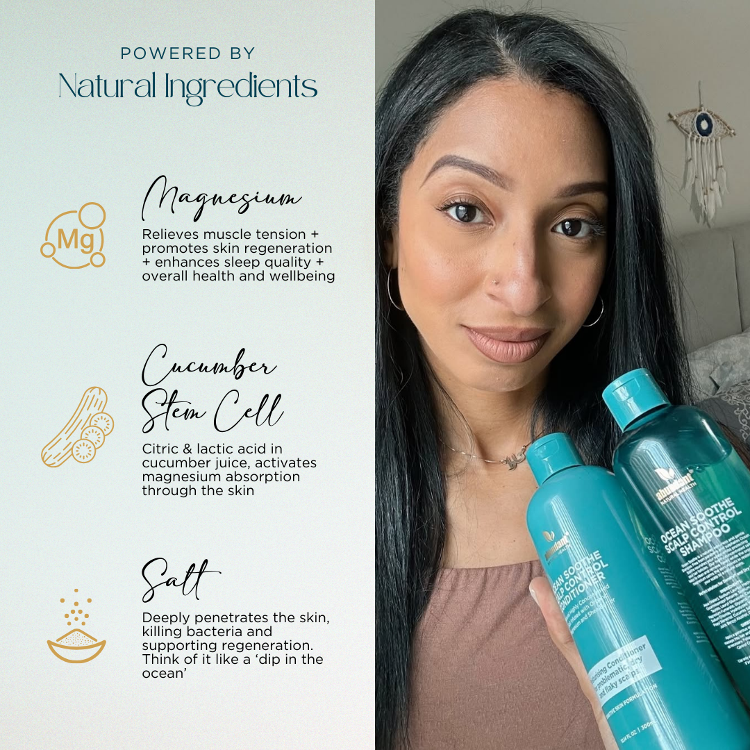 Harness the power of ocean-sourced magnesium, pure salt, and cucumber stem cell in this highly concentrated formula. Specially designed for sensitive scalp, our shampoo is free from parabens, sulphate and fragrances. This nourishing formulation removes flakes, protects hair follicles and helps restore your scalp to its natural balance.
